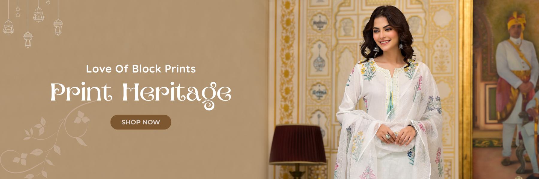 White Cotton Mughal Block Printed Kurta Pant Set
