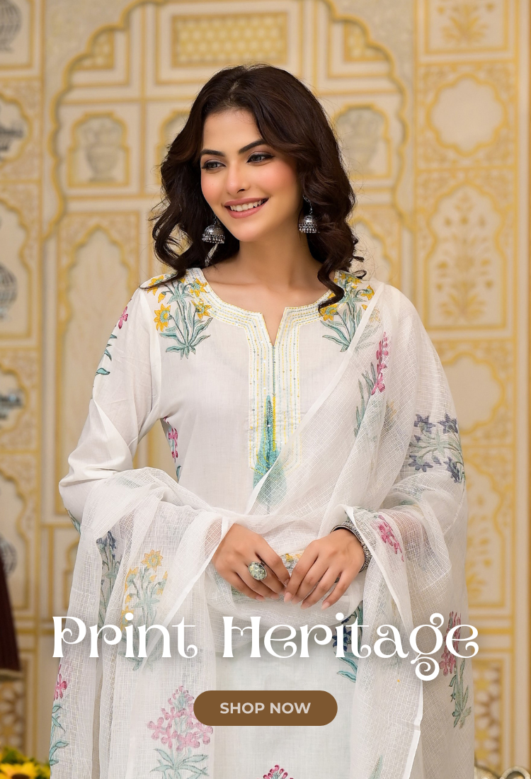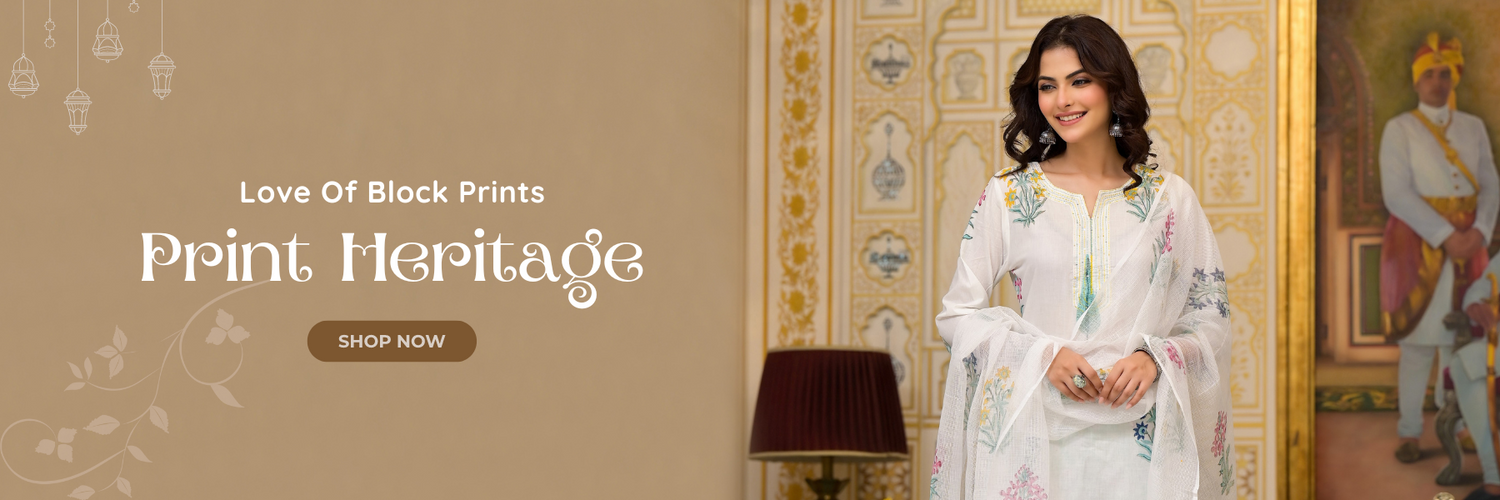 Beige Jaal Jaipuri Printed Cotton Kurta Pant Set