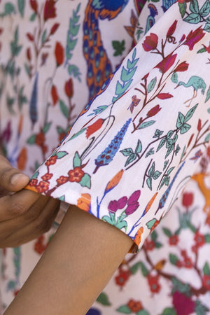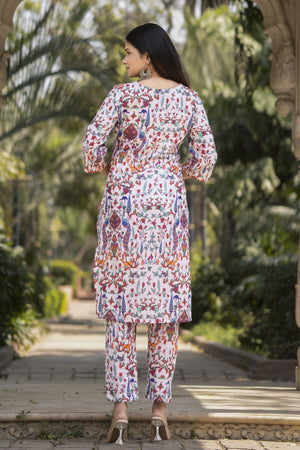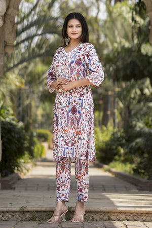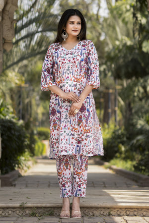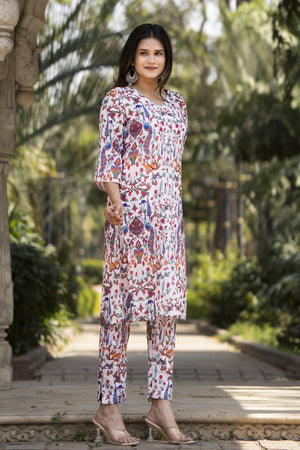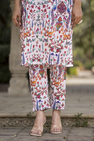White Printed Muslin Kurta with Pants - Set of 2
