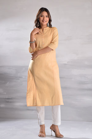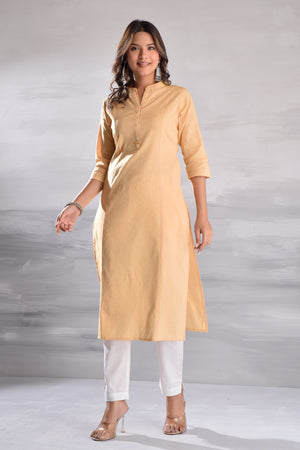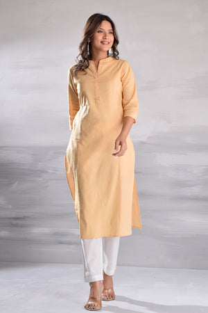 Cream Cotton Solid Kurta Pant Set