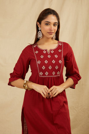 Maroon Cotton Partywear Suit Set-3 With Work On Yoke