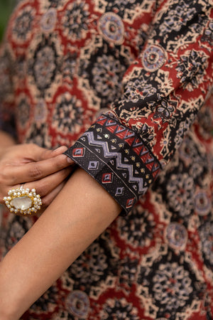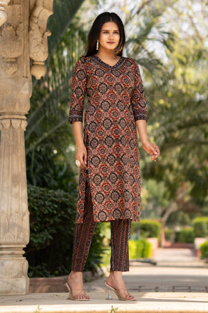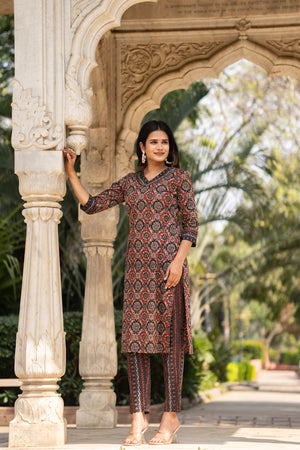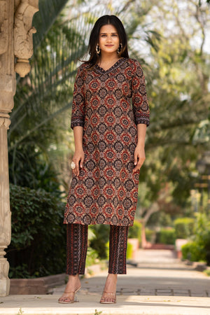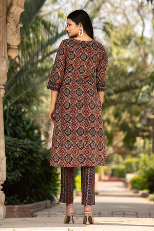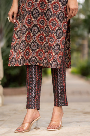 Maroon Printed Cotton Kurta with Pants - Set of 2