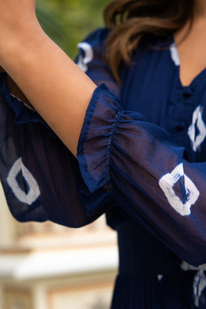 Navy Blue Tie and Dye Long Front Slit Chiffon Dress
