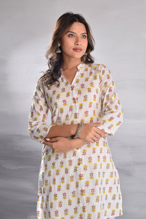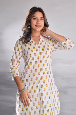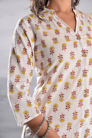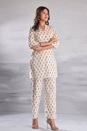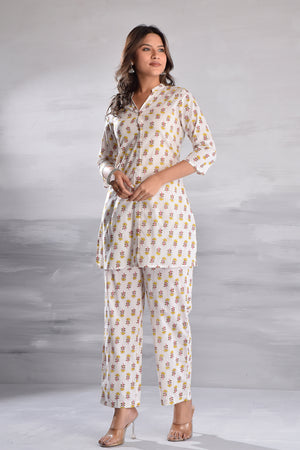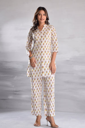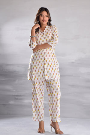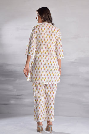 White Sanganeri Butti Printed Cotton Co-ord Set