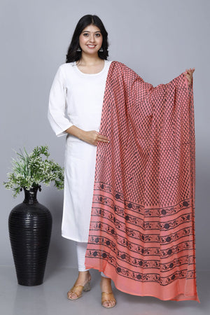 Peach Hand Block Printed Cotton Dupatta