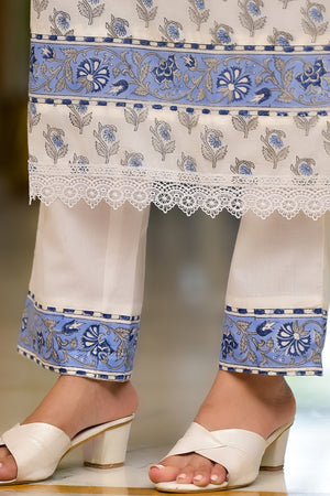 White Cotton Mughal Block Printed Kurta Pant Set With Dupatta